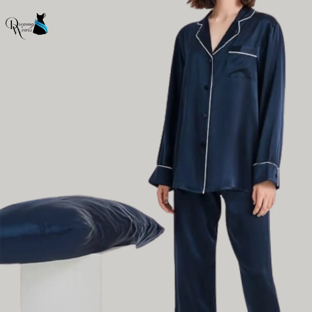 Give her a touch of luxury with our navy blue silk pajama set. This gorgeous set is made from high-quality silk fabric, ensuring both comfort and style.
